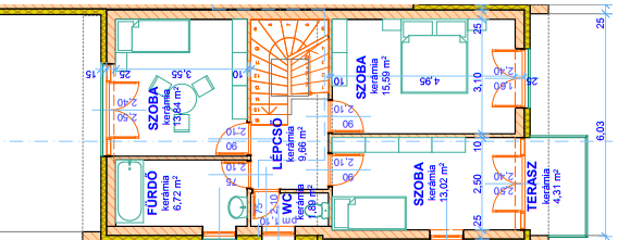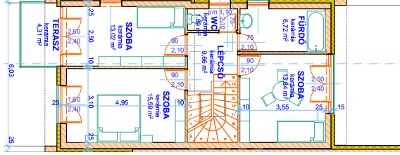 | Mosdó | 3,54 m2 | Fürdő | 6,40 m2 |